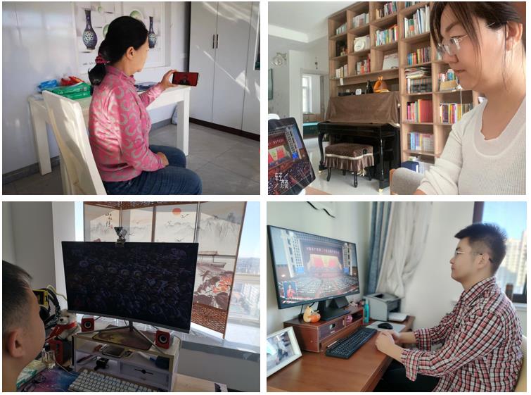 根据学校疫情防控闭环管理实际,在霍林河校区值班或工作的支部党员按学校要求在111会议室集中收看开幕会直播,其他党员或群众居家收看,共同聆听习近平总书记代表第十九届中央委员会向大会作的报告。